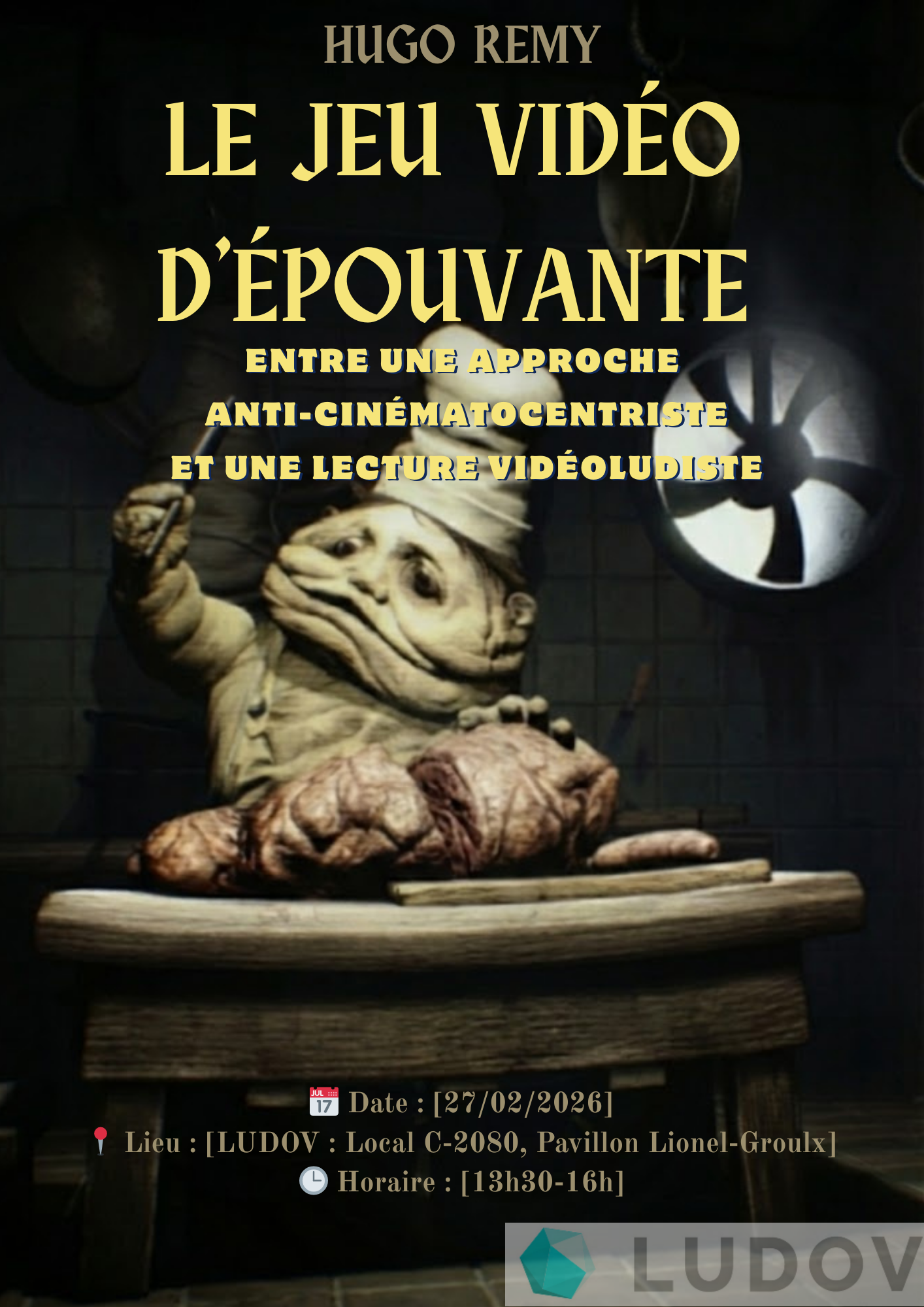 Laboratoire universitaire de documentation et d'observation vidéoludiques 3150 rue Jean-Brillant, local C-2080, MontréalPersonne invitée : Hugo Remy. « Le jeu vidéo d’épouvante : entre une approche anti-cinématocentriste et une lecture vidéoludiste ». Résumé : Il s’agit, avant tout chose, d’une synthèse de la ...